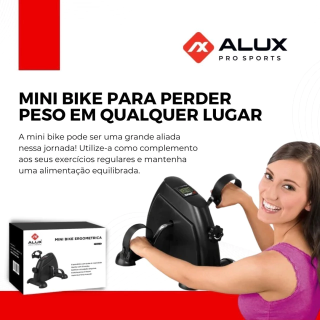A Mini Bike Ergométrica Fisio III é a opção perfeita para manter a rotina de exercícios em casa, no trabalho ou no atendimento de pacientes. Aproveite e garanta agora este lançamento exclusivo da Alux Pro Sports.